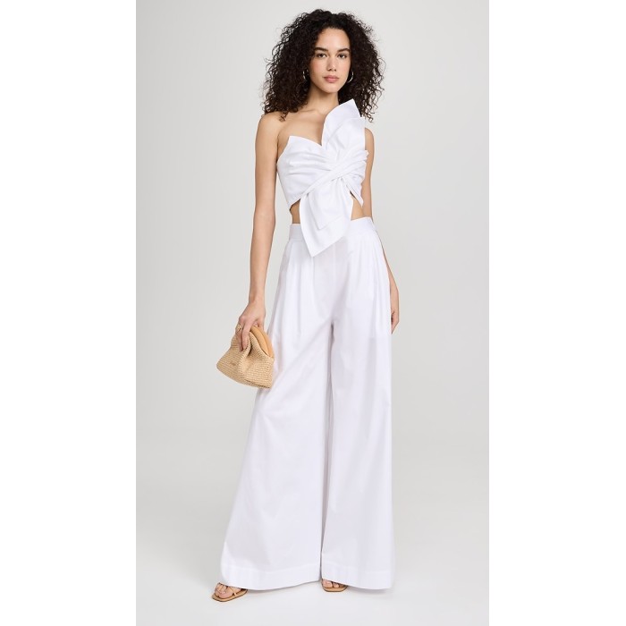 Hot Sale Sample Pleated Waist Covered Elastic At Back Waist Solid Color Pants