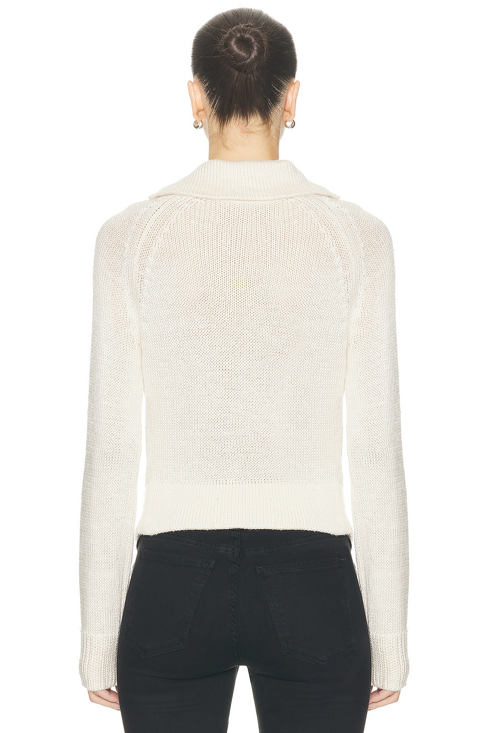 This is a chic off-white knitted sweater featuring a stylish cowl neck and an asymmetric design. Along one side, there are six prominent black round buttons that add a bold, eye-catching detail. The lightweight knit fabric gives it a soft, breathable texture, while the ribbed cuffs and slightly draped hem enhance its relaxed yet polished silhouette perfect for blending comfort with modern elegance.