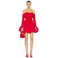 OEM Factory Off Shoulder Mini Dress Party 2024 High Waist Backless Bubble hem pleated Short Dress