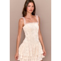 Romantic Sweet Dainty Lacy Ruffled Square neck Charming Graceful Mini Dress