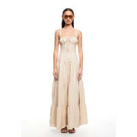 Sexy Sleeveless Square Neckline Slim High Tight Waist Flared Tiered Hem Casual Dress