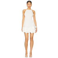 Fashionable Sweet Midweight Plisse Fabric Ruffled Hem Halter Style Backless Knitted Dress