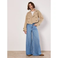 Simple Double-Breasted Long Sleeve Solid Color Notched Lapels and Cropped Length Coat