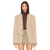Stylish Versatile Khaki Loose Fit Buttoned Cuffs Padded Shoulders Single Breasted Blazer This garment features a shell made of 97% polyester and 3% spandex, with a 100% polyester lining. It requires dry cleaning only. The design includes a front button closure, a chest welt pocket, side flap pockets, and buttoned cuffs combined with padded shoulders for structured shaping.