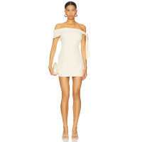 Hot Sale Off the Shoulder Fitted Short Length Beige Single Shoulder Bow Design Dress This dress uses 95% polyester and 5% elastane for the main fabric, with 100% polyester lining. It has an off-the-shoulder design and a self-tie detail on one shoulder. There's an invisible side zipper for easy wear. Made of medium-weight crepe fabric, it's fully lined and needs to be hand-washed.