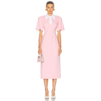 High quality Custom Logo Back Vent Front Button Trim Invisible Zipper Woman's Midi Dress