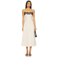 Elegant Vintage Off White Spaghetti Strap Lace Design Heavy Weight Linen Fabric Dress