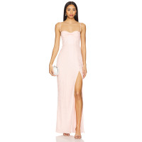 Hot Sale Fashionable Medium Weight Lace Pink Jacquard Open Back Halter Slit Long Dress