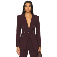 Deep Burgundy Double Breasted Slim Fit Blazer with Buttoned Cuffs and Back Vent