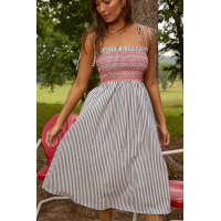 Daily Square Neckline Camisole Smocked Bodice Allover Striped Print Dress