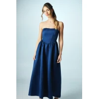 Elegant Fashion Bandeau Neckline Sleeveless High Waist Slim Solid Color Party Dress