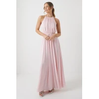 Elegant Fashion Halter Neckline Sleeveless Ruffle High Waist Solid Color Vacation Dress