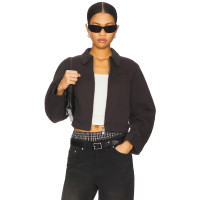 Cool Cropped TurnDown Collar Jacket Loose Sleeve Fashion Versatile This garment features 100% cotton fabric in medium-weight jersey, ensuring comfort and durability. It is machine washable for easy care, with a front zipper closure design for convenient wearing. The embroidered logo adds a touch of sophistication, while side pockets offer practical storage. Perfect for everyday wear, this piece combines functionality with classic style, making it a versatile addition to any wardrobe.