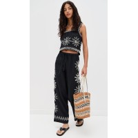 Sample Daily Covered Elastic Waist With Drawstring Sun Embroidery At Sides Pants