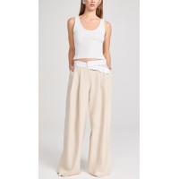 Daily Sample Pleated Front Contrast Asymmetric Waistband Solid Color Pants