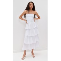 Elegant Sample Bandeau Neckline Sleeveless Solid Color Ruffle Tight Waist Tiered Skirt