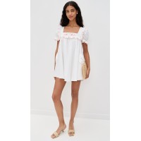 Sweat Sample Square Neckline Short Puff Sleeve Ruffle Edges And Floral Embroidery Casual Dress