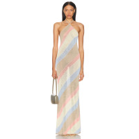 Ladies Sexy Elegant Halter neckline Backless Sleeveless Translucence Woman's Long Dress
