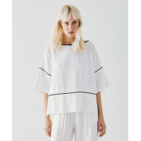 Sample Daily Boat Neckline Piping Details Batwing Sleeve Casual Dress