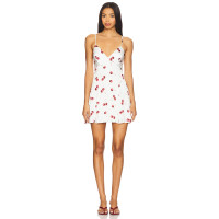 Red White Polka Dot Square Neck Sleeveless Front Self Tie Bow Accent Mini Dress