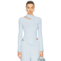 Ethereal Fluid Textured Cut out style Asymmetric hem Elegant Chic Delicate Woman's Blouses