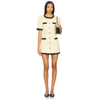 Luxurious Tweed Little Chanel Style Black Gold Color Blocking Gold Buttons Mini Dress