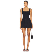 - Hot Sale Fashionbale Black Tie Up Square Neck Button Detailing Fitted Puff Mini Dress - US $36.9-35.9 / piece