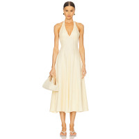 - Elegant Deep V Neck Tie up Straps Off White Halter Neck Midi Dress - US $36.9-35.9 / piece