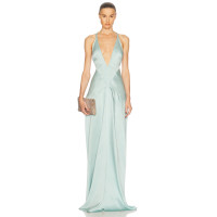 Deep V Halter neckline High slit Cross back Smooth Satin fabric Glamorous Elegant Woman's Maxi Dress