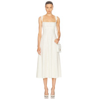 Spaghetti Open back Fitted Flared Elegant Minimalist Square neckline Woman's Midi Lace Dress