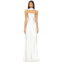 Glamorous Timeless Elegant Strapless Satin like Form fitting Halter style Woman's Maxi Dress