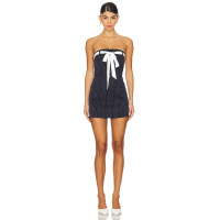 Off shoulder Pinstriped Sexy Fashionable Top decorative band Backless Woman's Mini Dress