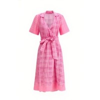 Charming Deep V neckline Bow tie China Manufactory Linen fabric Woman's Midi Dress
