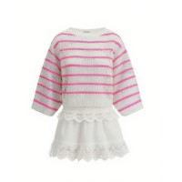 Color blocking stripe Lace trimmed Openwork knit Round neckline Feminine flair Woman's Sweaters