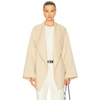 Elegant Delicate Wide lapel Belt trims Hot sale High V neckline Graceful Woman's Coat
