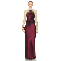 Halter neckline Lace trims Sexy Backless Cut out Back vent Woman's Party Long Dress