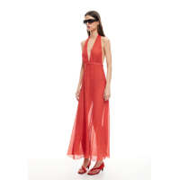- Polka dotted Alluring Elegant Sheer Halter V neckline Retro chic Woman's Long Dress - US $36.9-35.9 / piece