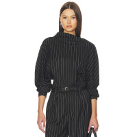 Pinstripe High neckline High end Fashion forward Modern Business style Woman's Blouses