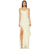 Charming Asymmetric ruffle pattern Spaghetti straps High quality Woman's Long Dress