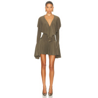 Deep V neckline Long sleeves Form fitting Draping Eye catching Romantic Woman's Mini Dress