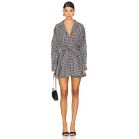 V neckline Casual Relaxed Lightweight Flowy High waist Check pattern Woman's Shirt Dress